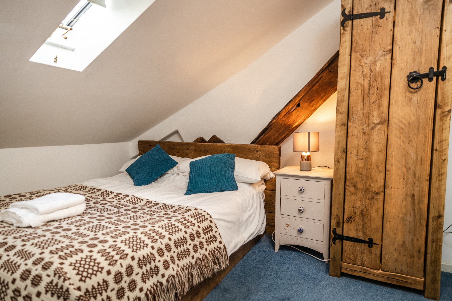 Ystafell fach, gwely maint dwbl, gydag ystafell ymolchi i’w rannu (yn y prif dŷ)