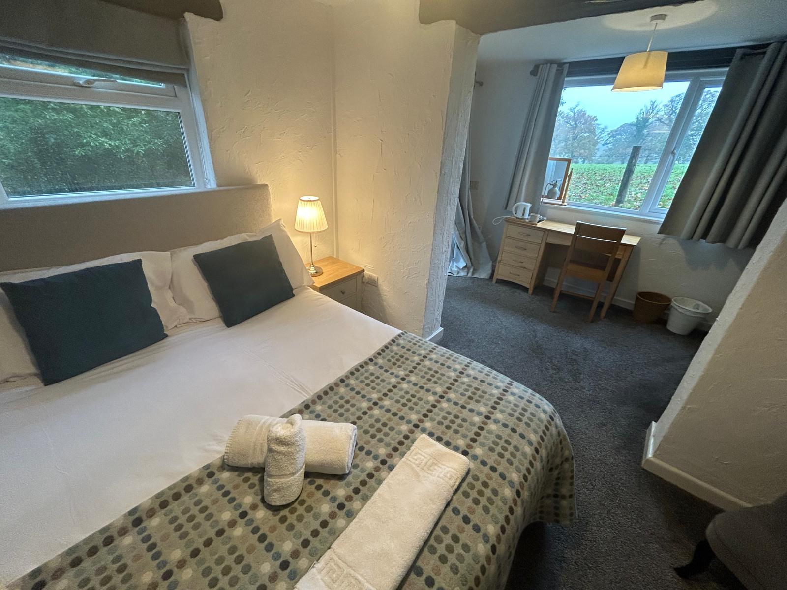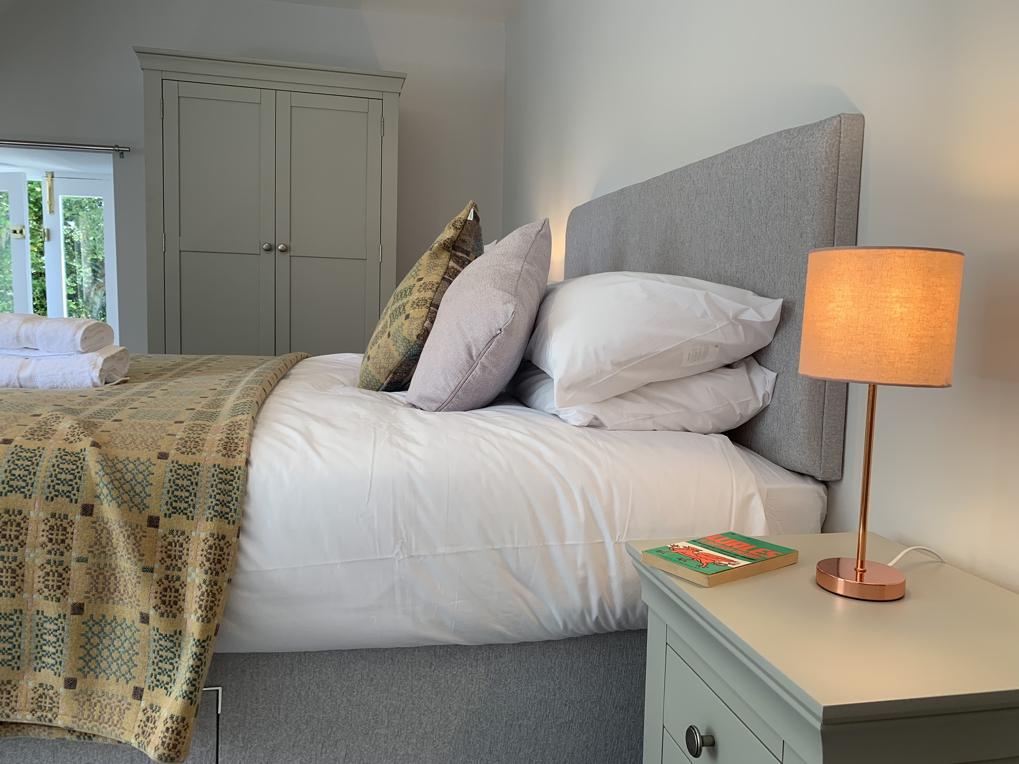 Ystafell ganolig ei maint, gwely maint brenin, gydag ystafell ymolchi en-suite (yn Hafoty, ein adeilad allanol)