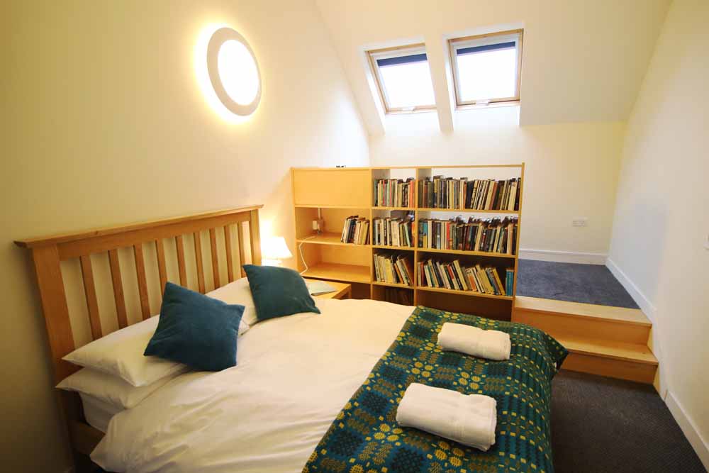 Mae ein bwthyn encil, Nant, yn aml yn cael ei archebu gan awduron unigol ar wahân i’n rhaglen gwrs. Fodd bynnag, os yw Nant yn digwydd bod ar gael yn ystod eich cwrs, a’ch bod awydd aros yn rhywle mwy moethus – cysylltwch â ni am ragor o fanylion. Nodwch fod Nant yn cynnwys ystafell ymolchi sydd yn cael ei rhannu rhwng y ddwy ystafell wely.